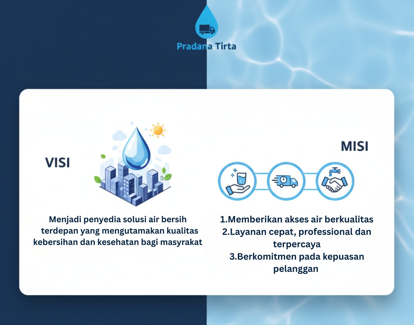 Didirikan pada tahun 2002, Pradana Tirta telah tumbuh menjadi mitra terpercaya dalam penyediaan solusi air bersih di Jabodetabek. Pengalaman kami selama lebih dari dua dekade mengajarkan kami pentingnya kualitas, ketepatan waktu, dan pelayanan yang profesional. Kami bukan hanya sekadar pemasok, tapi mitra yang memastikan kebutuhan air bersih Anda terpenuhi, baik untuk pengiriman air tangki maupun untuk membangun bisnis depot isi ulang Anda.